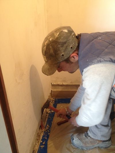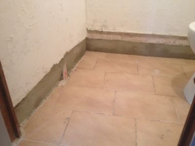 Réalisation d’un crépi de propreté pour soubassement avant la pose de finition.