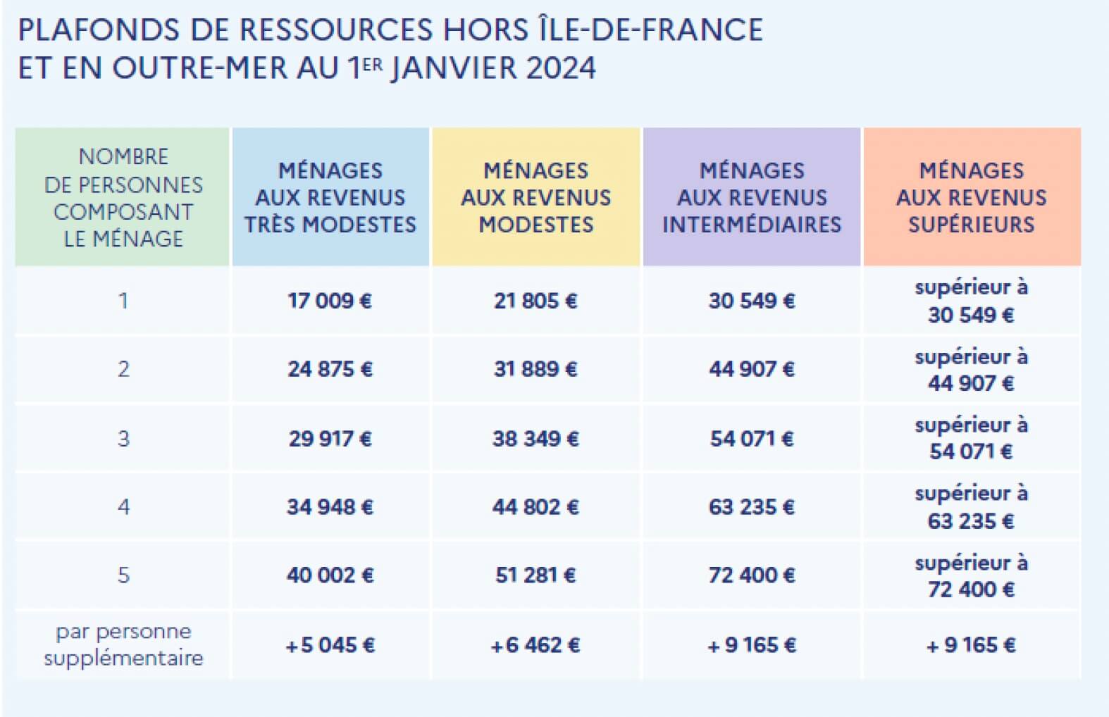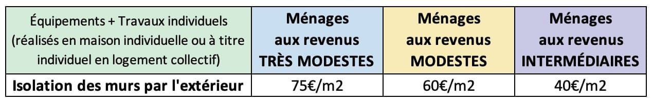 Un barème, composé de 4 couleurs, est défini en fonction des revenus et de la composition du foyer. Le montant de l’aide MaPrimeRénov’ varie en fonction de la couleur.