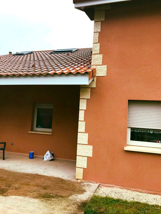 Enduiest Lorraine a effectué un ravalement de façades et a réalisé un chaînage d’angle pour accroître la résistance de la maison.