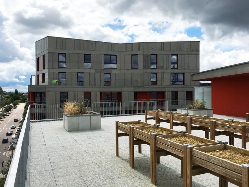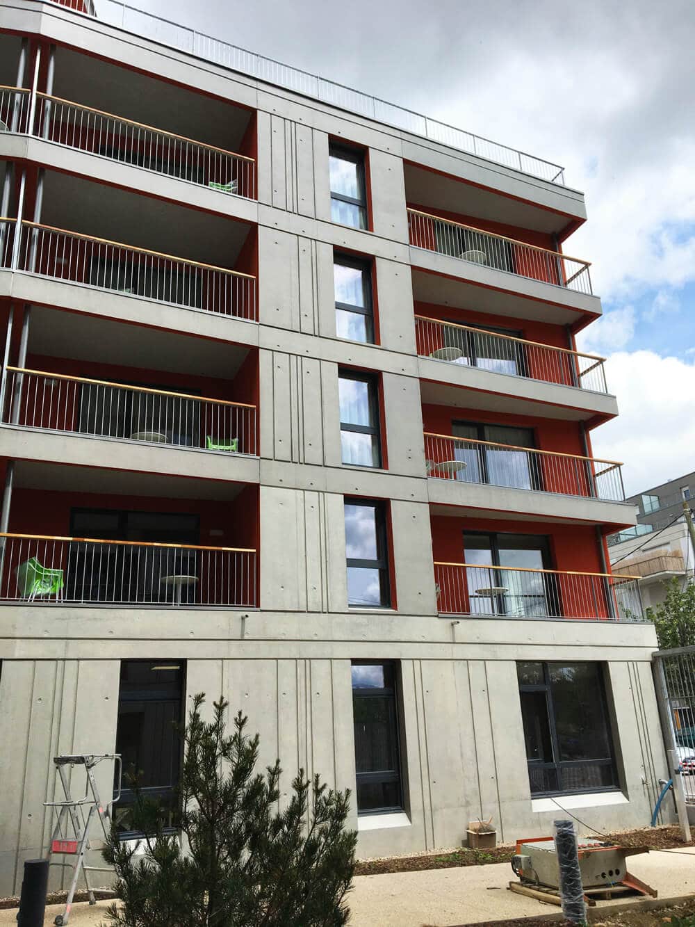 Enduit sur brique bi couche couleur 324 WB finition talochée d’une résidence sénior de 115 logements à Nancy.