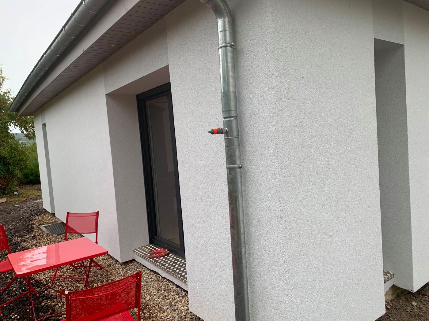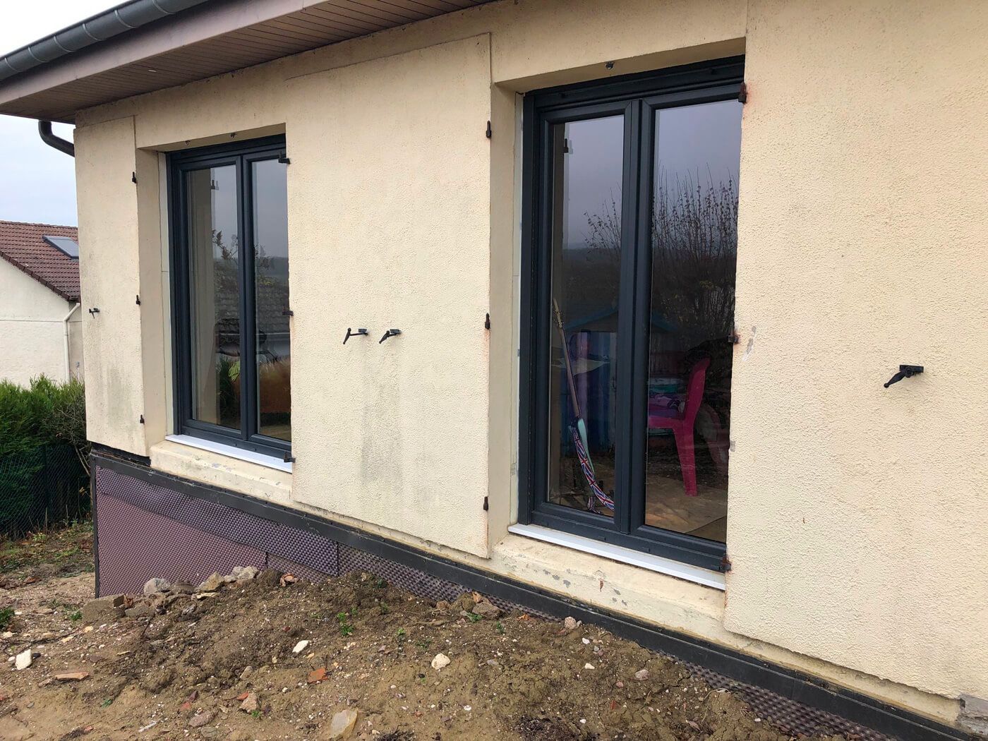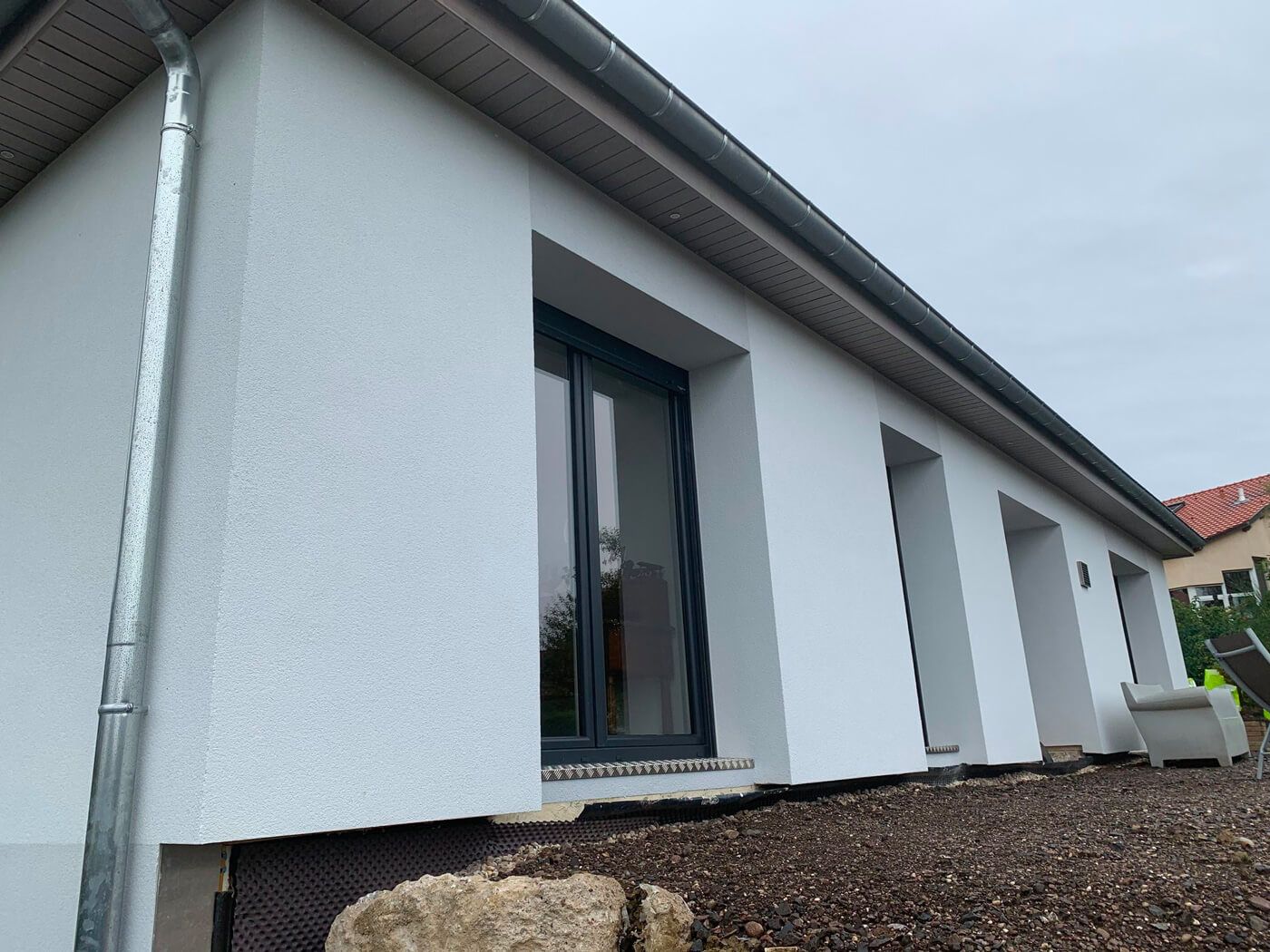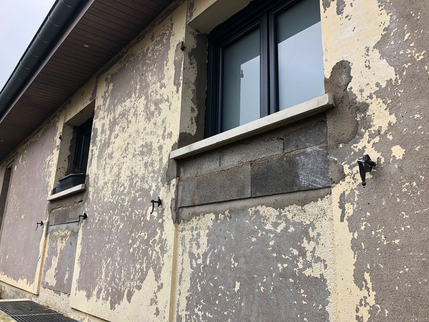 Isolation thermique par l’extérieur d’une maison avec un isolant polystyrène de 60 mm d’épaisseur.