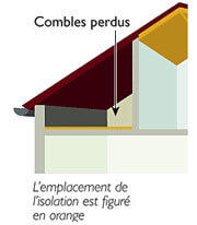 En effet, l’air chaud, plus léger, s’élève naturellement et vient en grande partie se loger sous les toits. Les combles perdus sont des espaces situés sous des toitures inclinées. Ils ne sont pas chauffés et doivent être séparés du logement chauffé par une barrière isolante. L’isolation de cette partie est d’autant plus nécessaire que les déperditions de chaleur sont importantes.