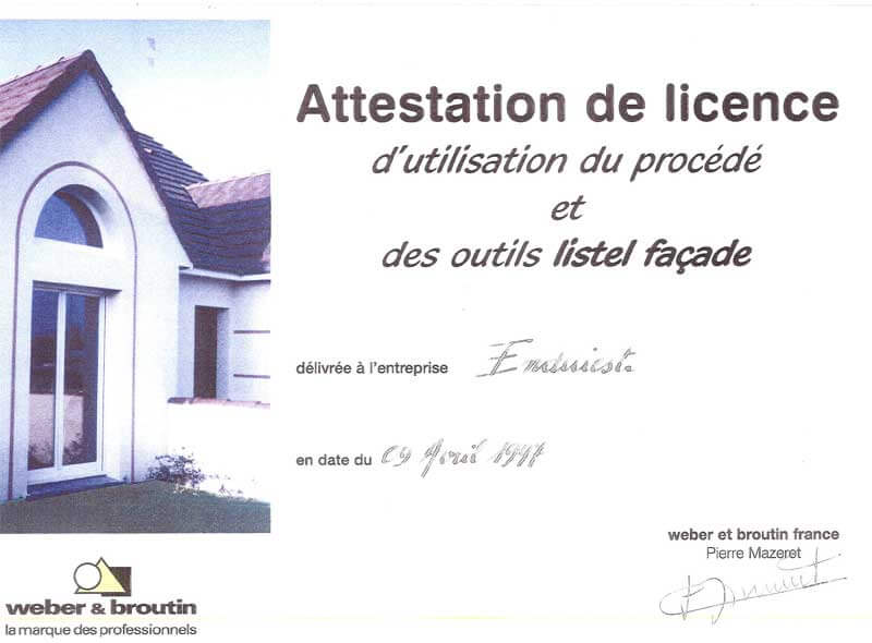 • QUALIBAT 2132 pour la partie Enduit et Crépissage