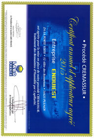 Cette maîtrise de la qualité nous permet d’être une entreprise muni des certifications suivantes :